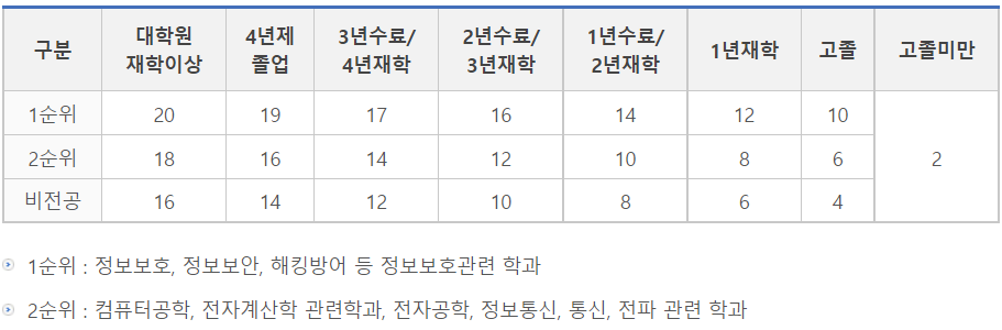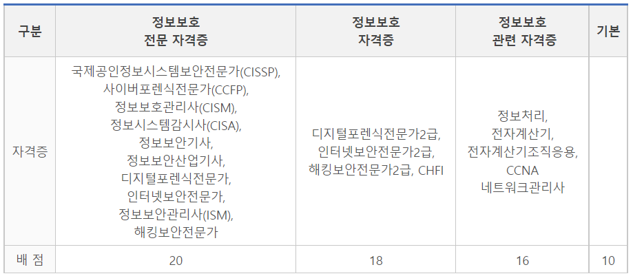 자격증 : 20점짜리는 지금 당장 칠만한게 없다(실력을 떠나 응시자격이 대부분 안됨) 그래서 정보보호 자격증 중 '인터넷보안전문가 2급'을 따기로 했다. 성공한다면 18점