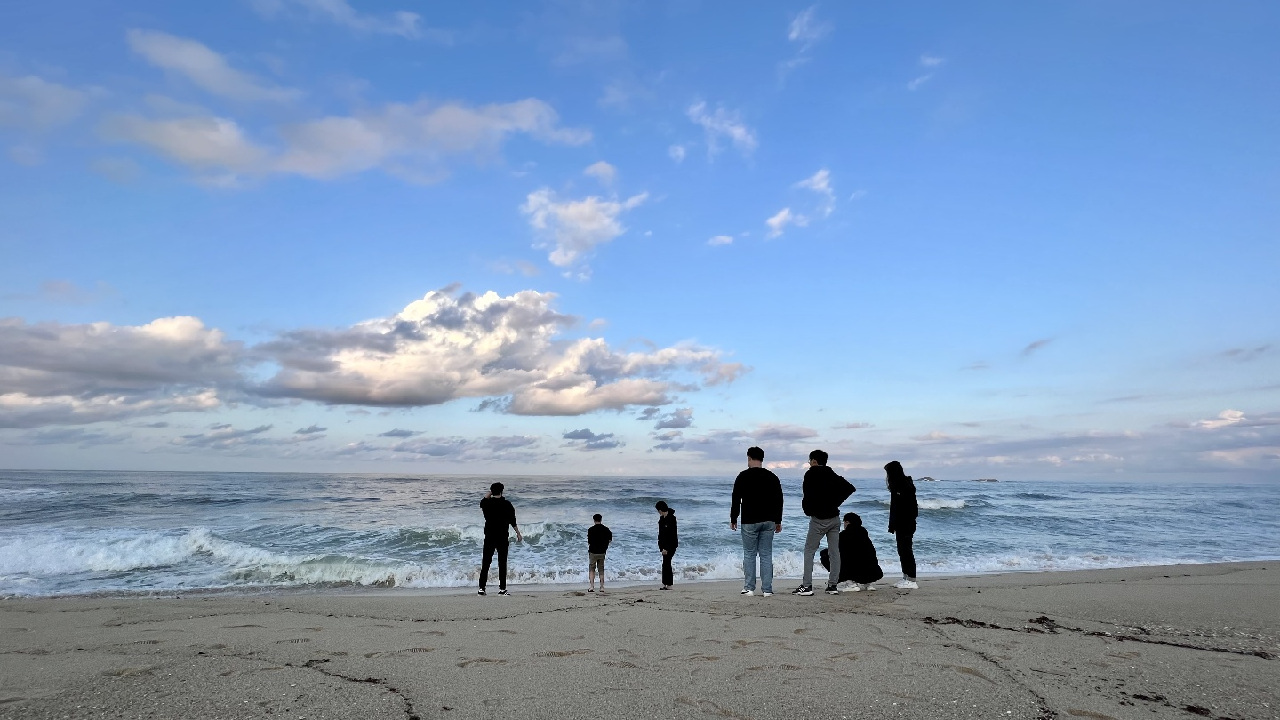 진짜 사진이 잘나왔다.(사진 작가님께 감사를) 파도랑 구름도 예쁘게 나왔고, 뭔가 MT 온 느낌이 나는 사진이다. 학회에서 맞춘 후드(개인적으로 굉장히 좋아한다)를 입고, 갔는데 이렇게 보니까 뭔가 있어보인다.