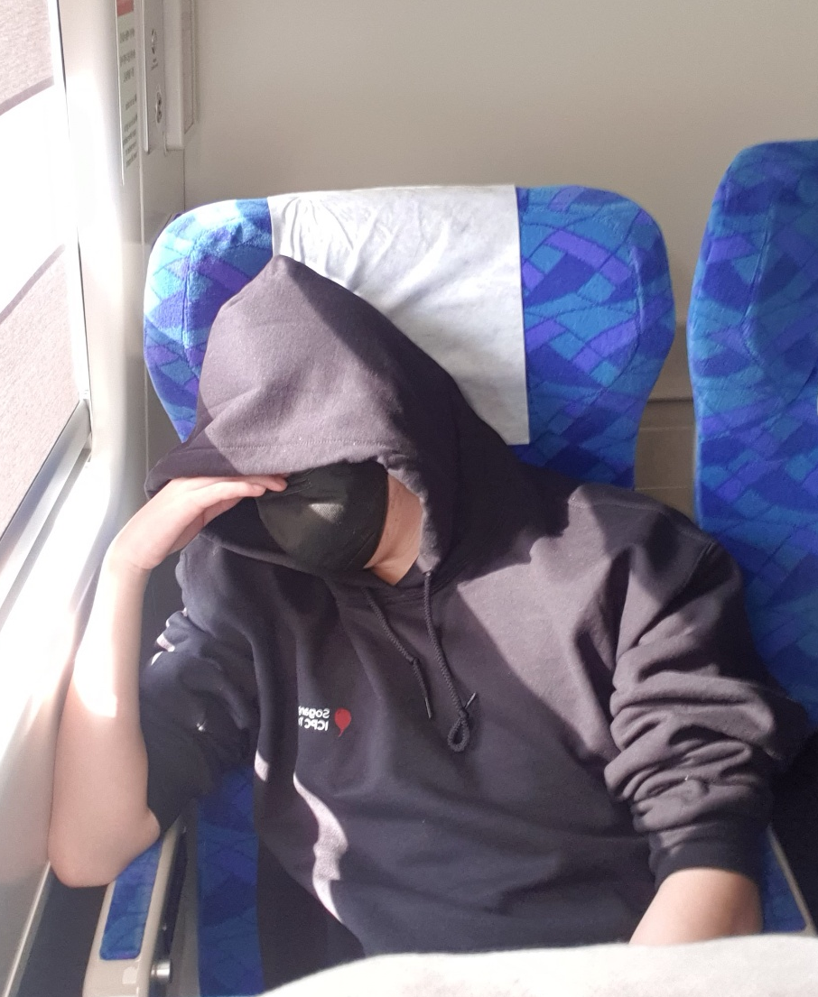 다음날 정말 비몽사몽하게 일어났다. (본인은 조기 기절했더니 독방을 쓰는 행운을...) 컵라면으로 해장하면서 체크아웃 시간에 맞춰나왔고, 기차타서 한번 더 꿀잠자며 왔다. 굉장히 고심하는 모습으로 잠든듯한데, 위 사진은 누군가에 의해 도촬당했다.