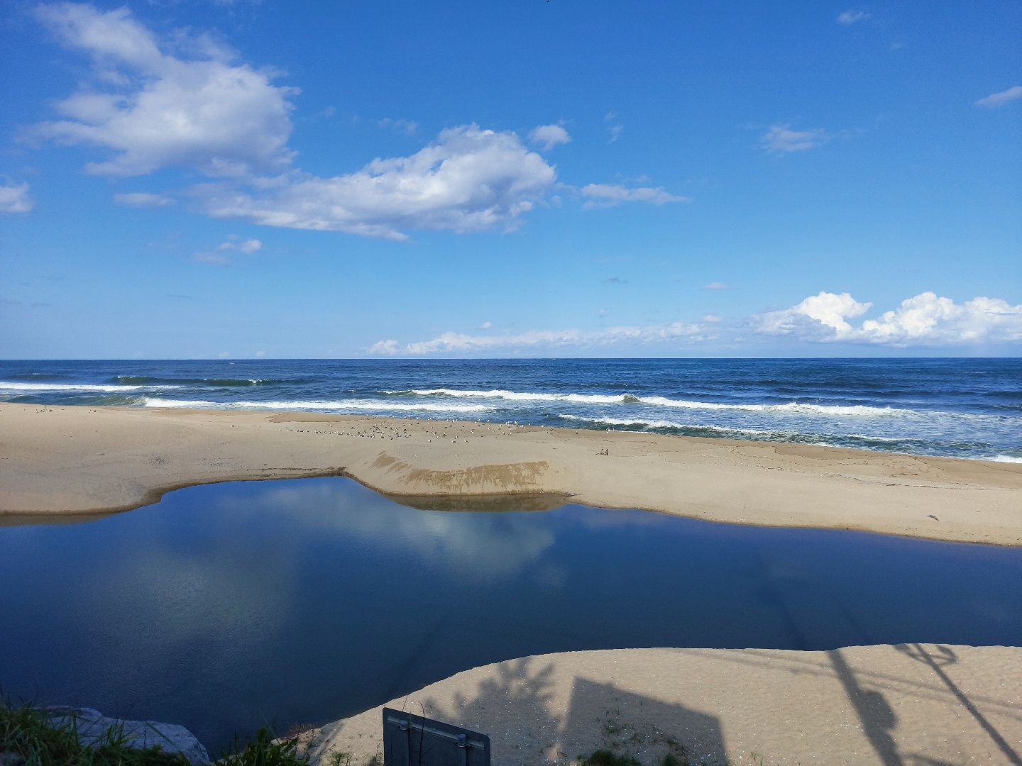 버스를 타고 숙소 쪽으로 이동해서 짐을 맡겨두고, 사근진해변쪽으로 나왔다. (실시간 수업이 있는 나를 포함한 불쌍한 이들은 노트북을 들고, 카페를 찾아 다녔다....) 구름과 파도와 지평선, 해수욕장이 그림 같았다. 사진에 보이련지 모르겠지만 갈매기 밭이였다. 모래모래 마다 갈매기 발자국이 삼지창 모양으로 찍혀있었다.