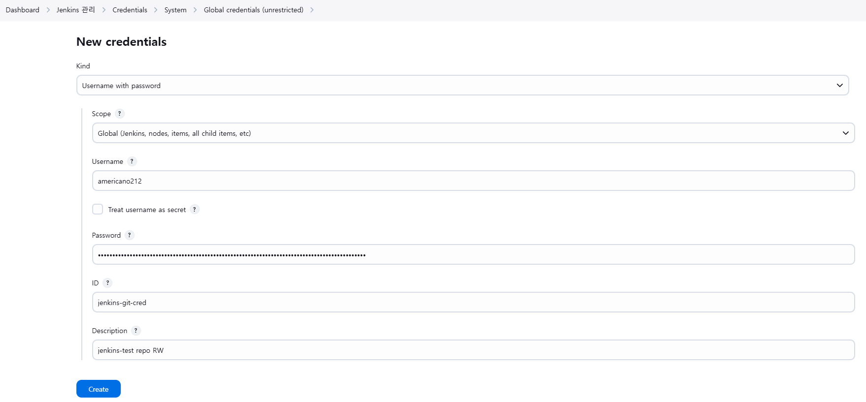 Jenkins로 돌아와서 관리 > Credentials로 들어갑니다.