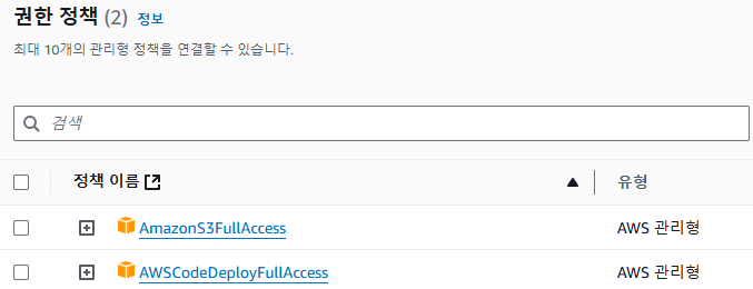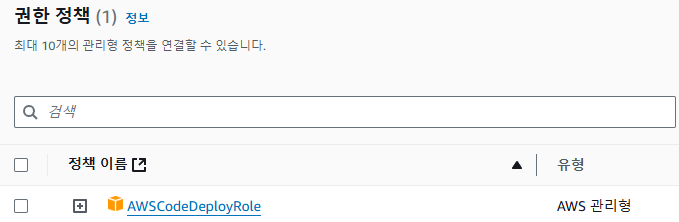 2. CodeDeploy용 IAM 역할을 생성합니다. 부여 정책은 아래 참조.