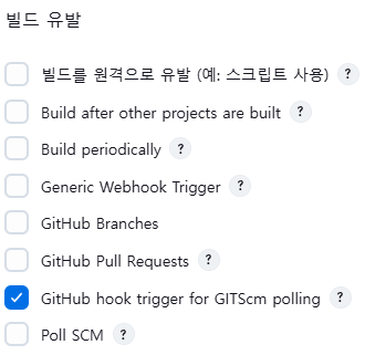 3. 빌드 유발 'GitHub hook trigger for GITScm polling' 선택