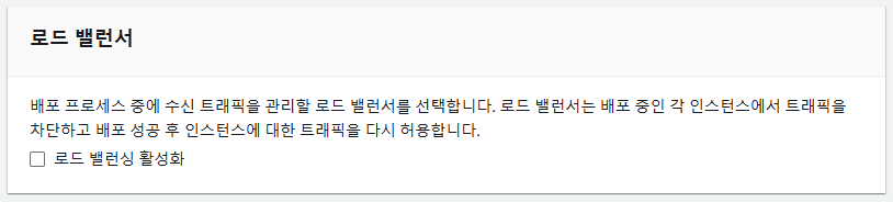 4. 일단은 단일 EC2에 배포할 거면 로드밸런싱은 꺼두면 됩니다.