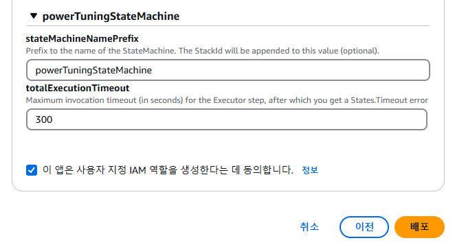 2. 하단에 IAM 역할 생성에 동의하기를 체크하고 배포해줍니다.
