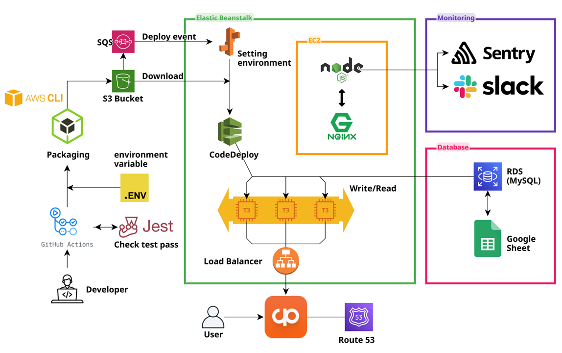 대회가 시작하자마자 빠르게 기획 회의에서 나온 아이디어를 바탕으로 ERD부터 정리하고 깃헙, AWS, CI/CD부터 세팅했다. 그동안 개인 프젝들을 해오면서 짜놨던 boilerplate와 terraform이 빛을 보는 순간이었다.