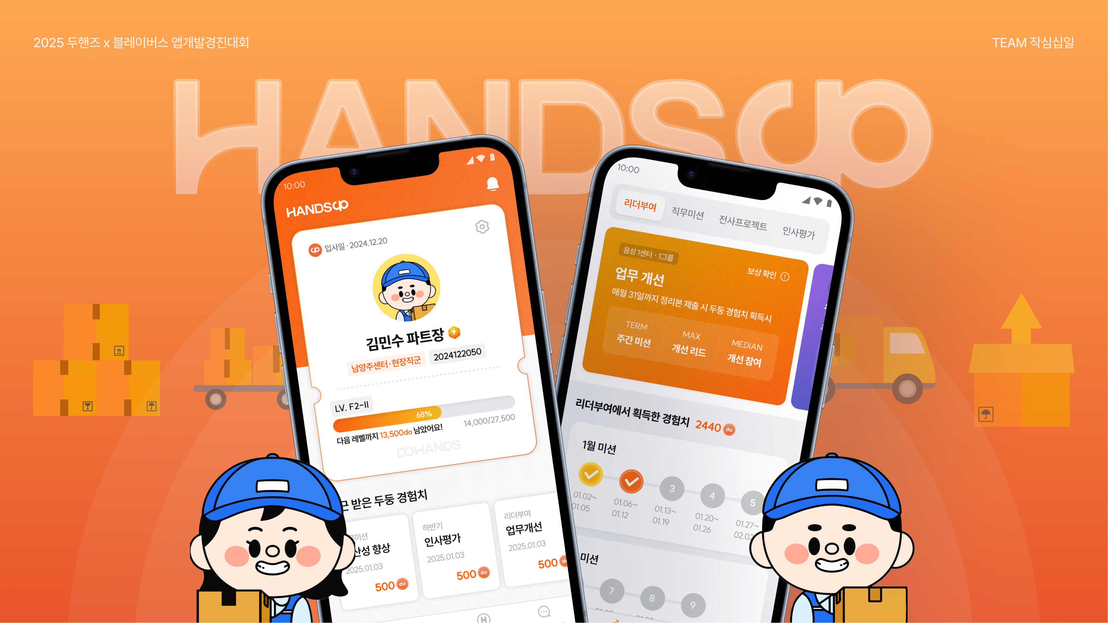대회는 두핸즈라는 스타트업에서 의뢰(?)한 내용을 수행하는 것인데, 주제는 '두핸즈 구성원의 성과관리를 위한 사내 게이미피케이션 앱 개발'이다. 기존에 사측에서 사용하는 인사 정보 체계(Google Spread Sheet)를 기반으로 구성원 개인이 본인의 성과를 실시간으로 확인하여 동기부여를 얻게 하는 것이 목표였다.