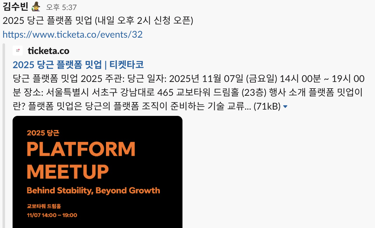 최근에 AWSKRUG AI enginnering 소모임, AWS Community Day 등 크고작은 컨퍼런스들에 참여해서 인사이트를 얻어왔는데, 최근 다녀온 당근 Platform Meetup에서도 인상 깊은 발표가 많았어서 해당 내용을 정리해보려 한다.