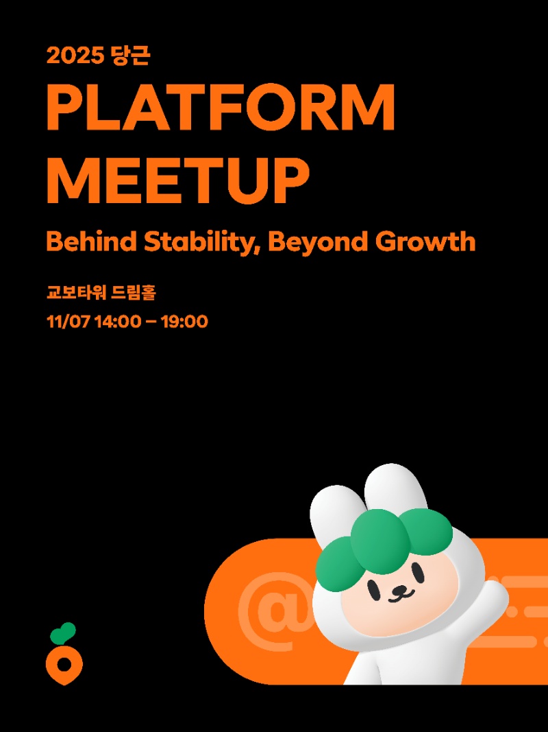당근 플랫폼 밋업 2025 주관: 당근 일자: 2025년 11월 07일 (금요일) 13시 30분 ~ 19시 00분 장소: 서울특별시 서초구 강남대로 465 교보타워 A동 23층 드림홀 행사 소개 플랫폼 밋업이란? 플랫폼 밋업은 당