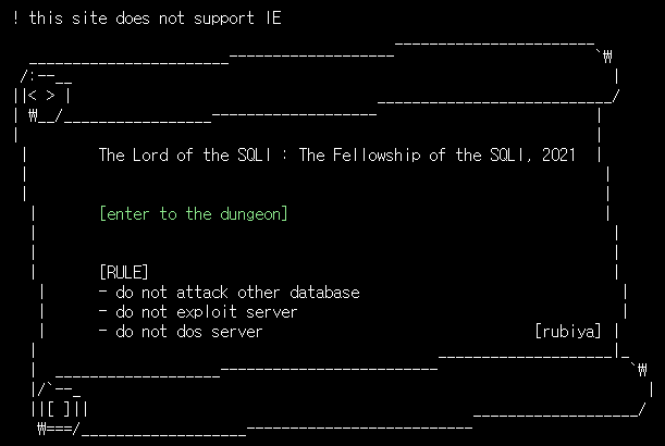Lord of SQLInjection(LOS)에서 방학동안 문제를 쭉 풀어보려고 한다. 사이트명 그대로 SQL Injection을 연습할 수 있는 워게임 사이트다. https://los.rubiya.kr/