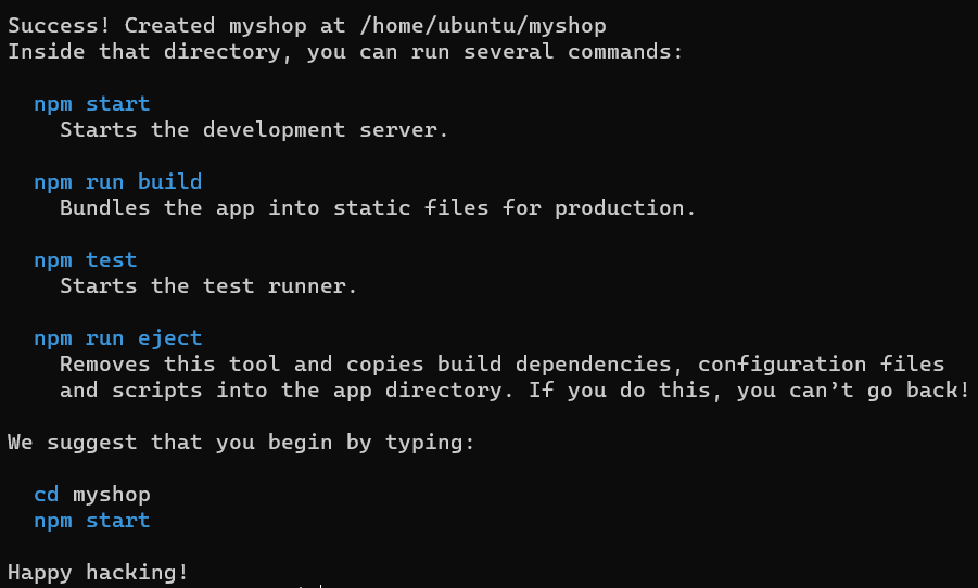 2. create-react-app을 설치하고, 프로젝트 폴더를 생성한다. (이하 myshop 자리엔 프로젝트 폴더)