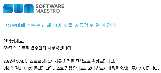 | [소마] 2편 - SW 마에스트로 13기 1차 코딩테스트 합격후기, 코테 준비, 지원후기, 문제 난이도 (3) | 2022.04.04 |