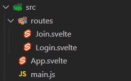 이후 src 폴더 안에 routes 폴더를 만들고, 페이지들을 svelte 파일로 만들어준다.