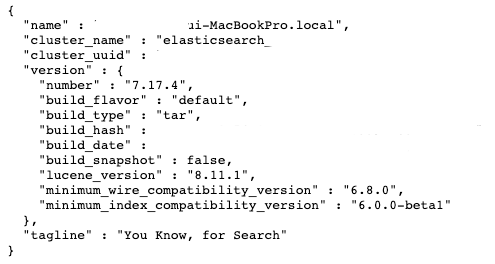 4. http://localhost:9200/ 로 접속해서 잘 실행되는지 확인