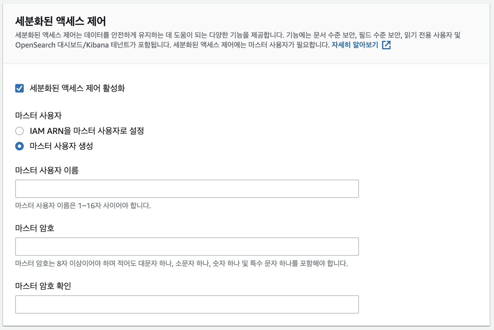 6. 사용할 id, pw를 입력해준다.(ES나 kibana 접근시에 사용된다)