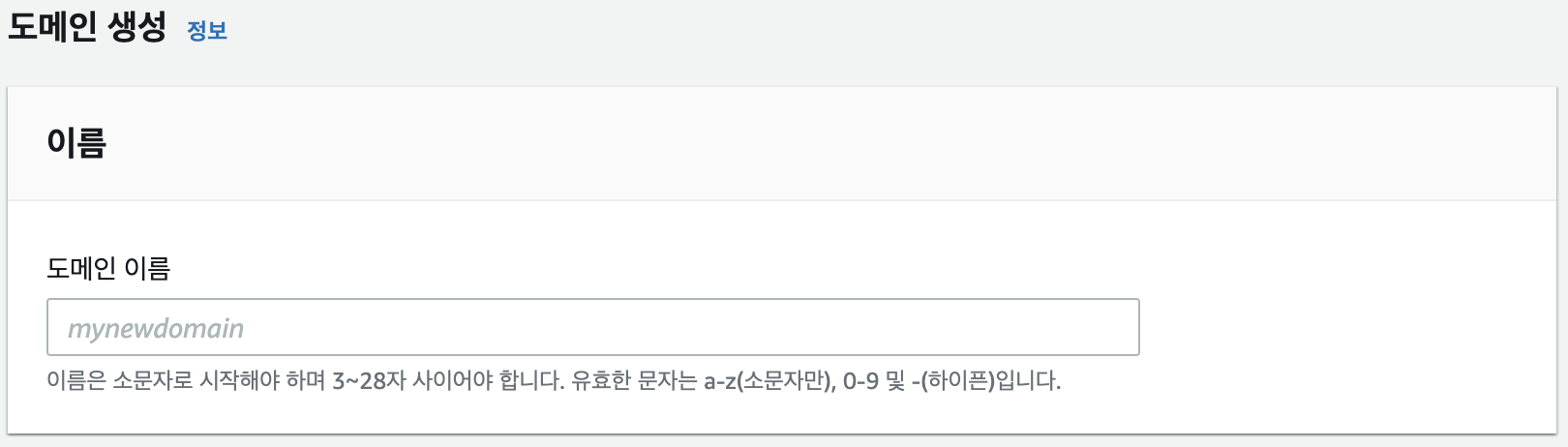 1. 도메인 이름을 설정해준다. (table name이랑 비슷한느낌으로 보면 편할 듯)