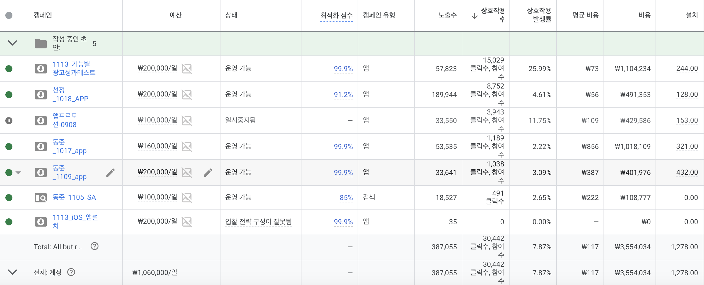 위의 표는 구글 ads로 광고를 돌렸던 결과인데(나머지 반은 페북광고로) 유저 1명이 설치하도록 하는데 2700원 정도가 들었습니다. 몇가지 느꼈던 점을 정리해보자면