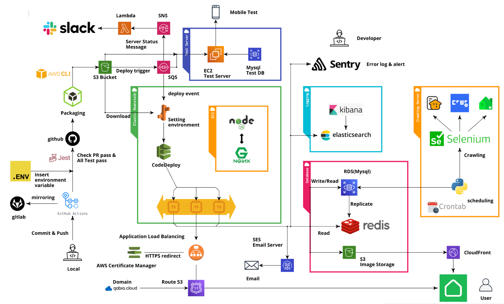 아래가 '딱집' 서비스의 아키텍처인데, 필요한 범위 안에서 여러 서비스를 써보려고 노력했던 것 같아요.