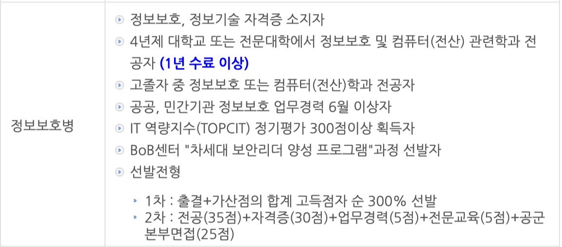 경쟁률은 평균적으로(요즘 육군 정보보호병이 폐지되고 좀 많이 늘어난거 같다) 5.대 정도는 되는 것 같다.
