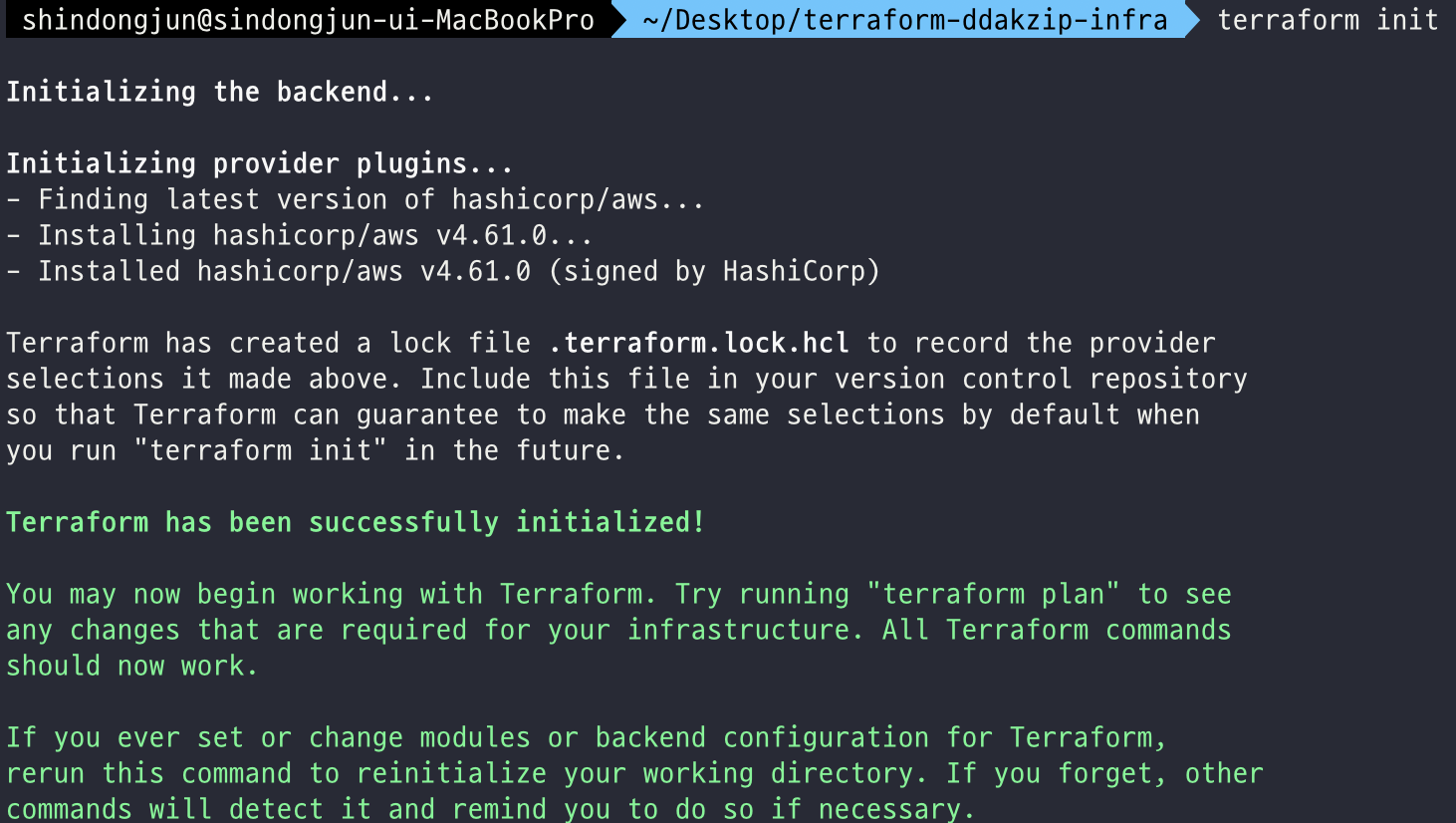* 설치 문구에 보면 "hashicorp/aws v4.61.0" 라는 것을 볼 수 있는데, 테라폼과 프로바이더는 각자 다른 버전으로 관리된다.