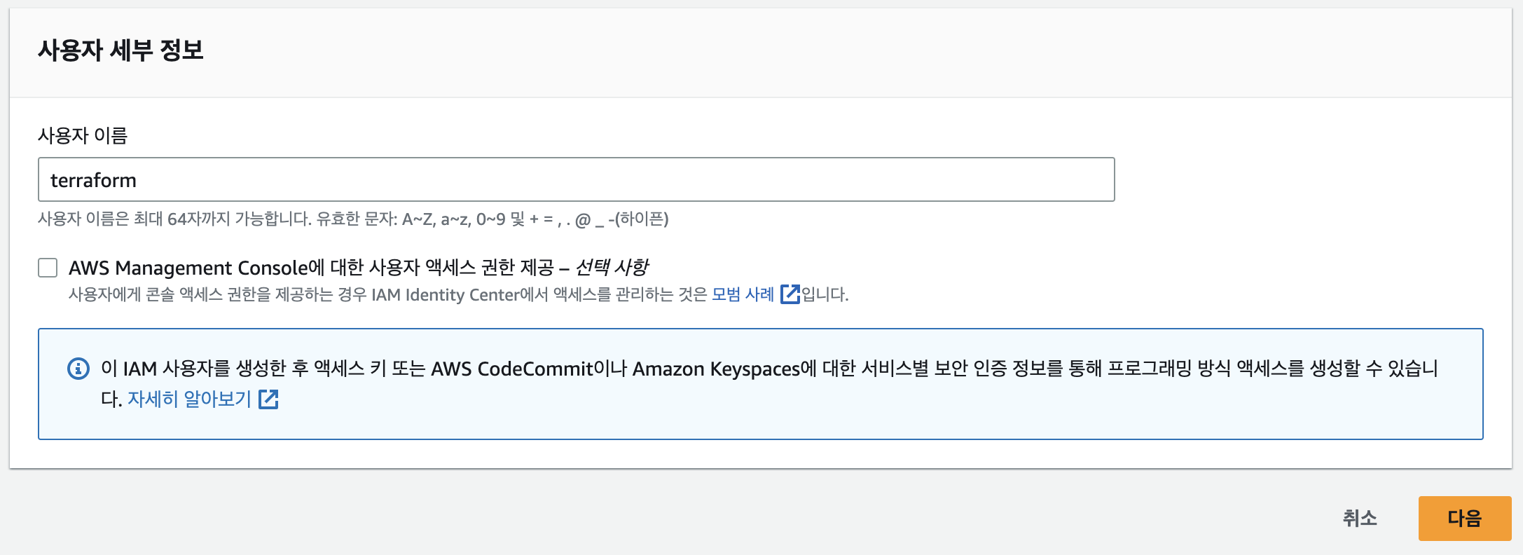 1. AWS IAM 계정 생성, 이때 엑세스키 발급을 같이 해주도록 합니다. 권한은 테스트를 위해서 poweruser 권한을 부여했습니다.