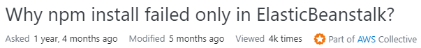 node.js - Why npm install failed only in ElasticBeanstalk? - Stack Overflow