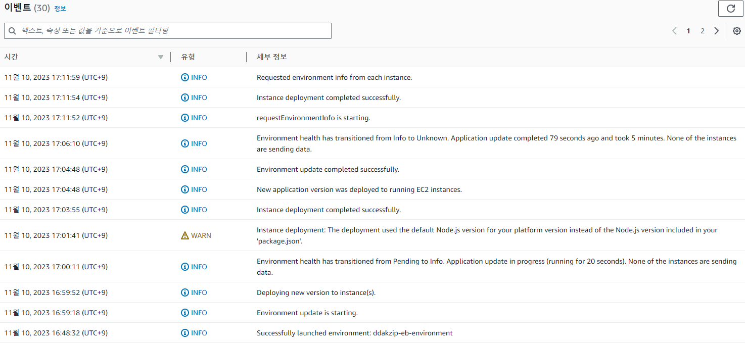 이벤트 부분을 보면 health check가 안된 EB는 정상적으로 instance가 배포되지 않은 것으로 인식한다.