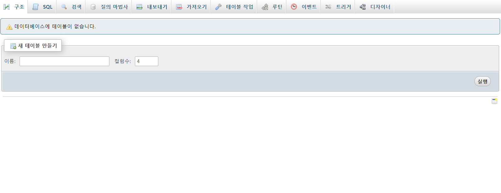 본인은 DB 관리를 용이하게 하기 위해서 (GUI가 더 좋은거) phpmyadmin이라는 프로그램을 깔았다.