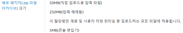 * https://docs.aws.amazon.com/ko_kr/lambda/latest/dg/gettingstarted-limits.html